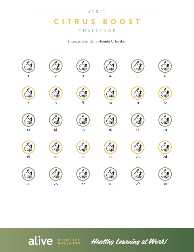 Increase your daily vitamin C intake 2026-03 Download this month’s Wellness Challenga here. Print it out, share it in your lunchroom, or email it to a friend!